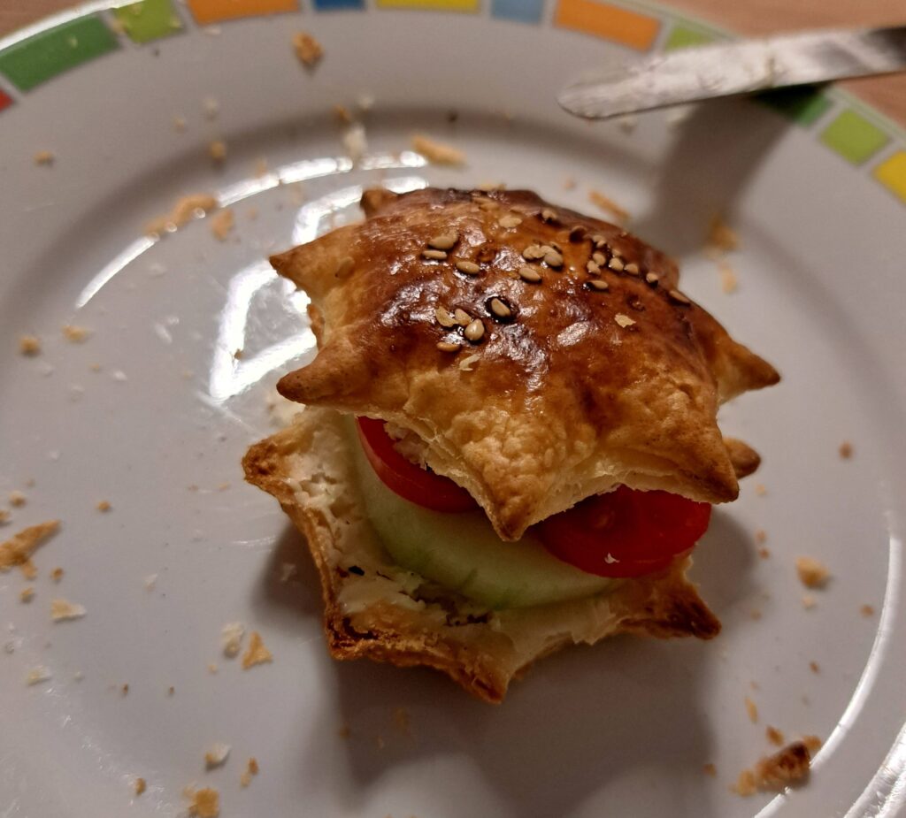 Hinter dem heutigen Türchen versteckt sich ein Rezept für Mini Sternburger aus Blätterteig.