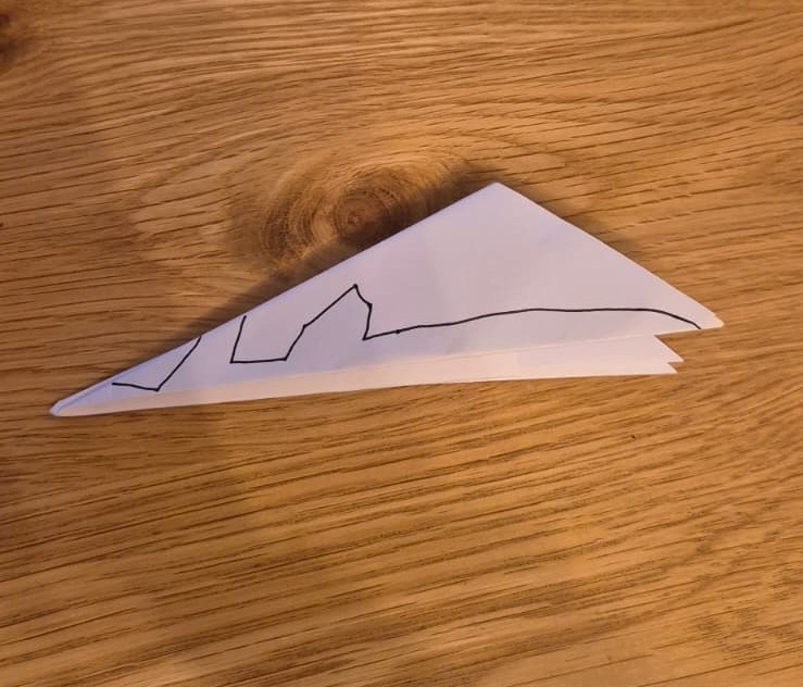 Falte das Dreieck noch einmal zu einem kleineren Dreieck.